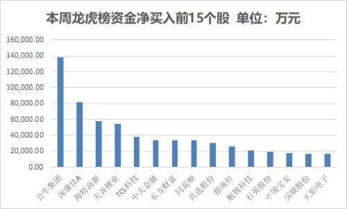 个股龙虎榜净买入金额居前的15只个股分别为: