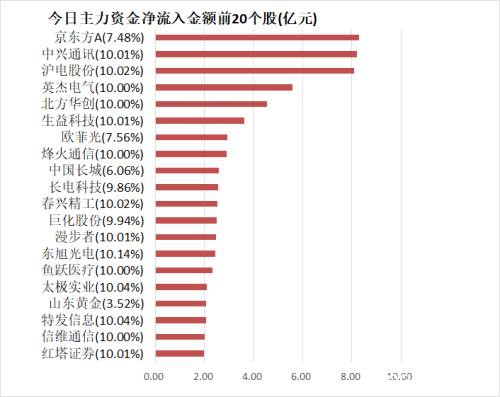 5、京东方A(行情000725,诊股)主力资金净流入8.31亿元居首
