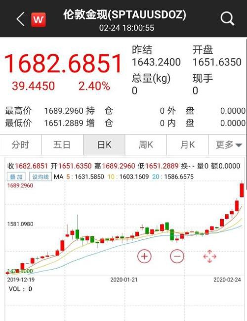 另外,在股市暴跌的同时,具有避险属性的金属――黄金的价格加速暴涨,截至发稿,伦敦金现货盘中涨幅一度接近3%,逼近1700美元/盎司。