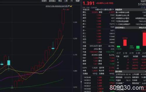 从节后低点1531.65点至周一收盘2131.78点,5G板块指数累计上涨逾39%。板块的暴涨让华夏中证5G通信主题ETF赚得盆满钵满,仅上周一周净值就增长13.98%,为所有非跨境ETF增幅第一名,基金份额上周五一日增加10.97%,达到101.22亿份,成功晋级为9只百亿份额非跨境ETF之一。