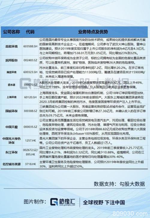 可以关注医废、固废龙头为业务点的,且基本盘扎实,财务数据没大毛病的相关龙头企业,尤其是那些有全国性优势、和规模优势以及在市政工程领域有话语权的行业龙头。另外,还可以注意有国资入局、巨额并购,业绩预增,收获大订单等这些加分项的相关企业,往往能带来不小的惊喜。