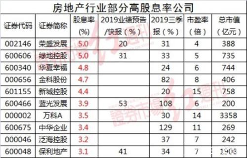 筛选后发现符合条件的房地产公司仅有10家,其中荣盛发展和绿地控股(行情600606,诊股)股息率达到5%左右,荣盛发展、绿地控股、蓝光发展和保利地产4家公司已经披露2019年报预告或快报。