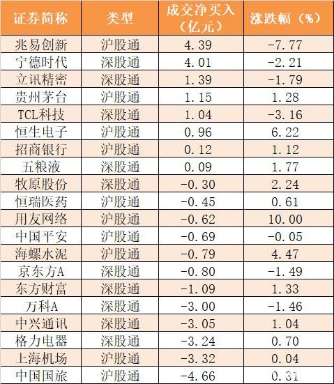 7、沪股通和深股通前十大活跃股