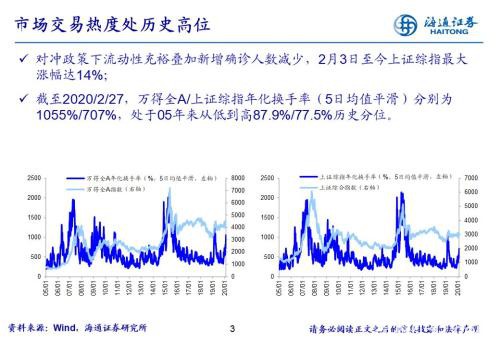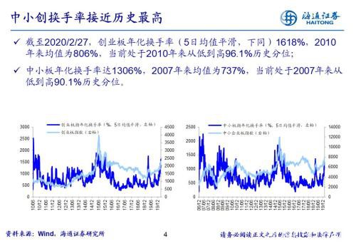 海通策略:从换手率看当前市场热度 Jakai • 2020年2月28日 12:55 • 股市 • 阅读 699 风险提示:向上超预期:疫情快速有效控制,国内改革大力推进;向下超预期:疫情传播不确定性增加,中美贸易关系恶化。 风险提示:向上超预期:疫情快速有效控制,国内改革大力推进;向下超预期:疫情传播不确定性增加,中美贸易关系恶化。 文章作者:Jakai,如若转载,请注明出处:http://www.809030.com/stocks/65725.html
