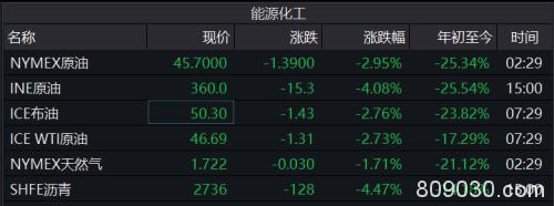 截至券商中国发稿,ICE布伦特原油期货主力合约价格报50.30美元/桶,当日跌幅2.76%,年初至今的累计跌幅已经达到23.82%。