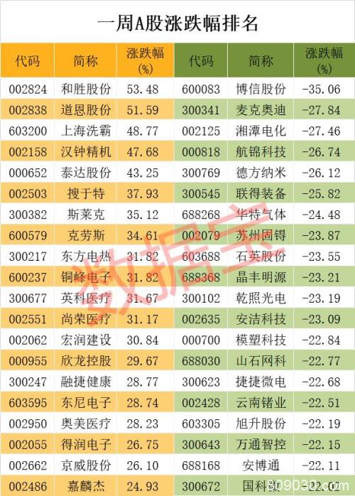 和胜股份(行情002824,诊股)问鼎本周涨幅榜