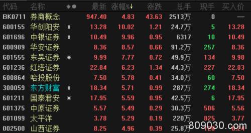 虽然上周末A股深度调整,但交投仍保持活跃,连续8个交易日成交超万亿元。这也刺激券商板块今日集体上涨,板块指数上涨4.55%,华创阳安(行情600155,诊股)、中银证券(行情601696,诊股)涨停,华安证券(行情600909,诊股)、东吴证券(行情601555,诊股)、红塔证券(行情601236,诊股)等涨幅居前。