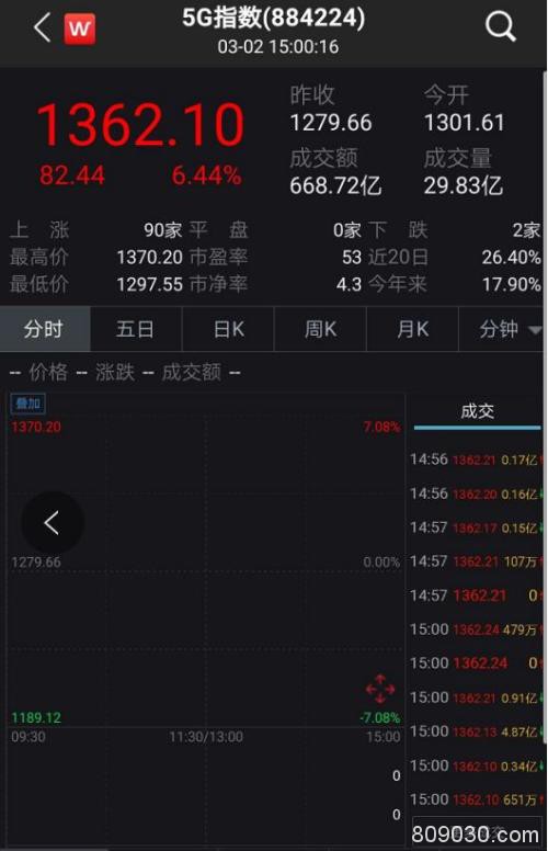截至当日收盘,5G指数大涨超6%,成交额超660亿;5G ETF指数大涨超5%,成交额突破40亿元。