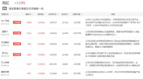 嘉美包装(行情002969,诊股)、电声股份(行情300805,诊股)沾了网红的光;