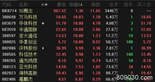 今日早盘,5G板块再度活跃,德威新材(行情300325,诊股)、万马科技(行情300698,诊股)、依米康(行情300249,诊股)、中通国脉(行情603559,诊股)等11股涨停,海特高新(行情002023,诊股)、亚光科技(行情300123,诊股)、通鼎互联(行情002491,诊股)等涨幅居前。
