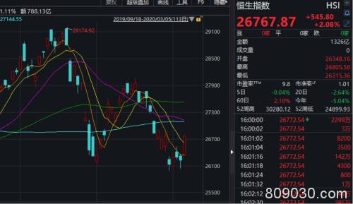 近期总体非常疲弱的港股今天不仅止跌,恒生指数收盘甚至大涨2.08%,恒生指数已连续8个交易日在27000点以下波动。