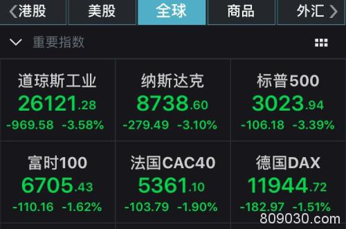 当地时间3月5日,欧美主要股指集体下跌,美股三大股指跌幅均超过3%,道指下跌近1000点。