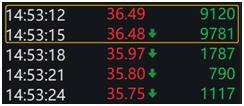 午盘开盘,涨停封板强劲,正当持股股民们打算庆祝星期六迎来的最新五连板时,在下午14:50分左右时间,股价突然90度直线跳水,股价一瞬间从涨停板落到跌停板上。
