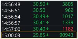 而从当天成交数据来看,临近收盘最后7分钟时,连续两笔大额卖单开始挂出,而在最后一分钟时间,更有超9万手卖单挂出,直接将股价死死砸在跌停板上。