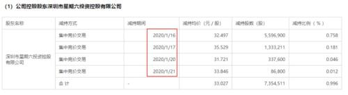 东财Choice数据显示,1月16日、1月17日、1月20日、1月21日,星期六控股分别减持559.69万股、133.32万股、33.76万股、8.68万股,合计735.45万股,减持均价为33.03元/股,变现2.43亿元。