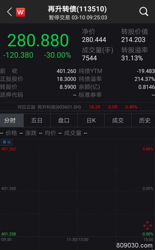 3月10日上午,多只防疫概念的转债集体熄火,其中,再升转债开盘大跌30%。上交所3月9日上午公告,再升转债今日上午交易出现异常波动,根据相关规定,再升转债两次触发停牌规则,上交所对其实施第二次盘中临时停牌,停牌时间持续至今日14时57分。