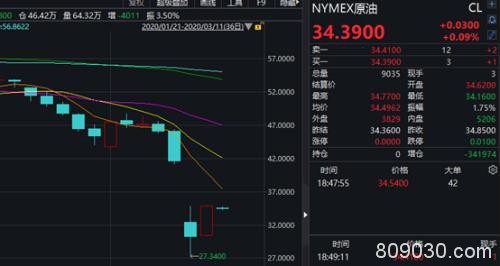 北京时间3月11日7点前,NYMEX原油主力期货一直在34美元至35美元区间窄幅波动。