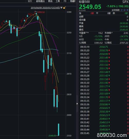 今日开盘后,标普500指数跌幅扩大至7%,触发本周第二次熔断,美股暂停交易15分钟。而加拿大多伦多证交所暂停股票交易,股指跌9.17%,触发一级市场熔断。