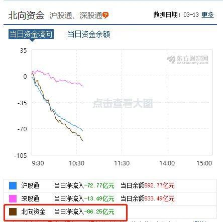 海外市场动荡,北上的海外资金持续净流出,到今日上午10:40左右,已经净流出超80亿元。