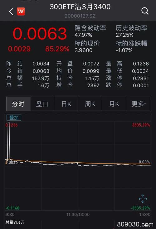300ETF认沽期权而言,嘉实300ETF沽3月3400合约盘中一度暴涨3535%,相当于一天1万变35万。