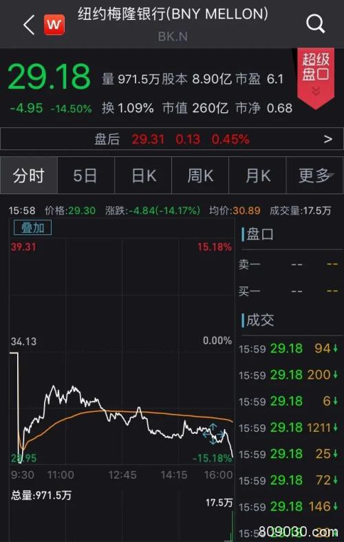 16日,纽约梅隆银行收报29.18美元,今年已累计跌41.6%。