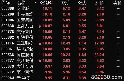 受沃尔玛股价强势影响,今日A股相关板块应声而起,商业城(行情600306,诊股)、中央商场(行情600280,诊股)、上海九百(行情600838,诊股)等13只个股集体涨停,其中三江购物(行情601116,诊股)、华联综超(行情600361,诊股)等更是一字涨停。