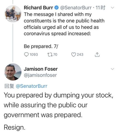 网友:“你卖了股票做足了准备,也向公众证实了我们的政府做好了准备。辞职。”