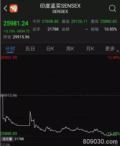 亚太股市大部分出现暴跌。截至收盘,印度孟买SENSEX指数跌超13%。由于新型冠状病毒疫情的蔓延,印度宣布3月23日至31日,封锁包括首都新德里在内的75个地区。孟买、班加罗尔、海得拉巴和加尔各答等均在封锁名单中,这意味着成百上千万科技和财经方面的员工将在家办公。