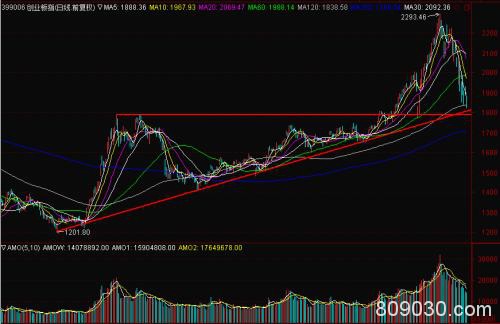 目前创业板指依然位于支撑线之上,所以目前暂不能确定是否破位。