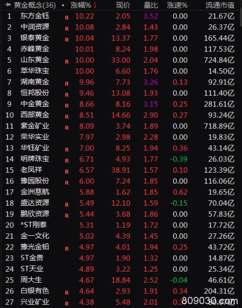 此外,金价的爆发也引发了A股中黄金股的大涨。其中,贵金属板块和黄金概念纷纷大涨,概念股山东黄金(行情600547,诊股)、银泰黄金(行情000975,诊股)、赤峰黄金(行情600988,诊股)等掀起涨停潮。