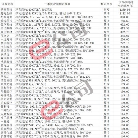 一季报预告业绩增幅居前的公司(数据来源:Wind)