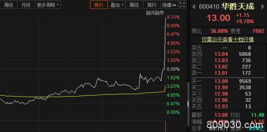 受消息刺激,华胜天成临近收盘直线拉升,最后3分钟从跌2.28%拉升至涨9.70%,尾盘涨幅达12%。截至收盘,股价收报13元,最新市值142.84亿元。