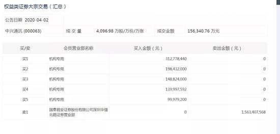 5G概念资金流入靠前的有:中兴通讯(行情000063,诊股)流入超5亿元,信维通信(行情300136,诊股)流入超3亿元,烽火通信(行情600498,诊股)、中天科技(行情600522,诊股)流入超亿元。值得关注是,中兴通讯盘后出现31笔大宗交易,合计成交金额15.6亿元,成交价均为38.16元,较今日收盘价折价10.6%,卖方均为国泰君安(行情601211,诊股)深圳华强(行情000062,诊股)北路,买方多为机构席位。