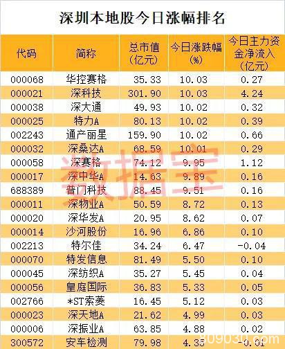 就在今日盘中,在另一则突发利好的刺激下,临近尾盘深圳本地股集体异动,深大通(行情000038,诊股)(维权)、华控赛格(行情000068,诊股)、特力A(行情000025,诊股)、通产丽星(行情002243,诊股)、深桑达A(行情000032,诊股)、深中华A(行情000017,诊股)等急速拉升并涨停。