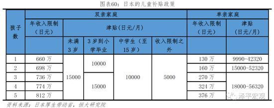 在经济补贴方面,日本生育女性可获得42万日元的一次性生育临时金、以及每月约1万日元的儿童补贴(12岁以下)。日本女性生产可以获得42万日元的一次性生育临时金,养育儿童可获得根儿童补贴。在收入限制内、抚养一个三岁以下的孩子的家庭,每个月可以获得15000日元的儿童补贴;抚养3岁到小学毕业的孩子的家庭,有2个孩子以内的每月可获得10000日元,3个孩子及以上的每月可获得15000日元等。