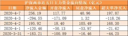 周二沪深两市主力资金开盘净流入117.77亿元,尾盘净流入40.96亿元,两市全天资金净流入256.19亿元。