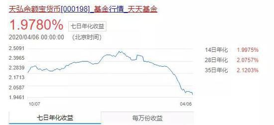 数据显示,截至4月6日,天弘余额宝货币基金7日年化收益率为1.9780%,这是其2013年5月29日成立以来首次跌破2%。对此,天弘基金回应称,海外央行进入一轮新的货币宽松周期,中国央行也实行更加宽松的货币政策,向金融市场投放大量流动性。在当前宽松的货币背景下,可投资的资产收益都出现了大幅下调。天弘基金方面强调,为确保产品的安全性,天弘对余额宝的各项风控指标要求都要远远高于一般的货币基金产品,因此,天弘余额宝的收益也会跟随市场而下行。