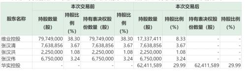公告称,维业控股及张汉清先生及一致行动人同意放弃本次股权转让后各方共持有的上市公司剩余股份合计3397.63万股(占公司总股本的16.3263%)的表决权,以确保华实控股成为上市公司控股股东。