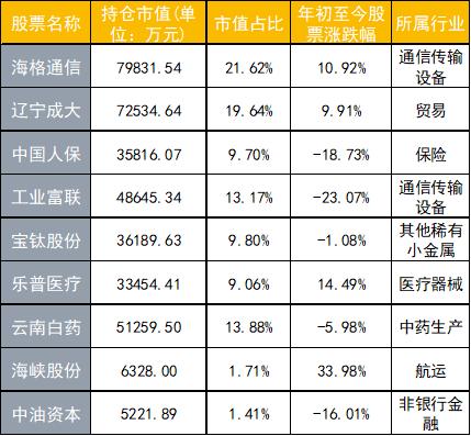 截止至今,2019年中国太保(行情601601,诊股)的持仓高度集中,持仓中国银行的市值占比达到59%。另外五只重仓股分别为中国巨石(行情600176,诊股)、宁沪高速(行情600377,诊股)、东阿阿胶(行情000423,诊股)、密尔克卫(行情603713,诊股)和福斯特(行情603806,诊股)。年初至今,除运输业股票密尔克卫出现50%的上涨,其他四只股票均出现不同程度下跌,东阿阿胶跌幅达到25%。