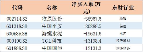 在净买入上述11股的同时,外资净卖出靠前的个股中,这5只净卖出额较多:牧原股份、中国平安、海螺水泥(行情600585,诊股)、TCL科技(行情000100,诊股)、中国国旅(行情601888,诊股)。详见下表:
