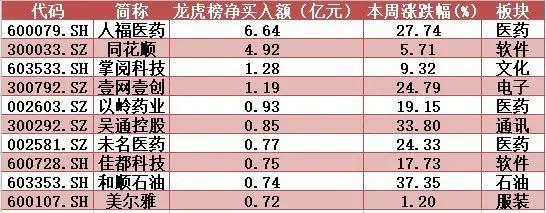 ▲本周龙虎榜净买入个股前10名