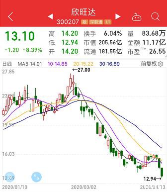 此前两个交易日跌近10%的欣旺达(行情300207,诊股)今日再度低开低走,收盘大跌8.39%,报13.1元,创出本轮调整新低。自2月24日创历史新高价27元以来,该股持续走弱,股价已经腰斩,最高点以来跌幅达到51.48%。