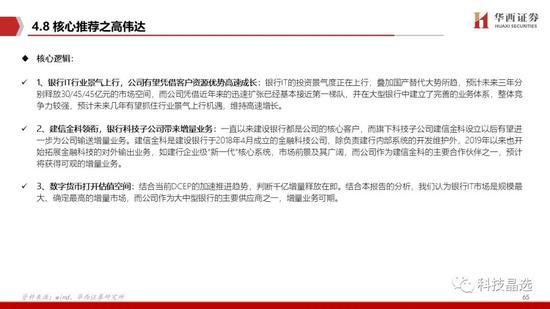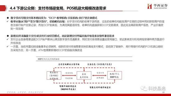 3、从软件及改造角度看,受益最确定、空间最大的是银行IT软件厂商,其次为机具及加解密厂商。从商业运营角度看,未来基于场景运营的厂商有望受益。