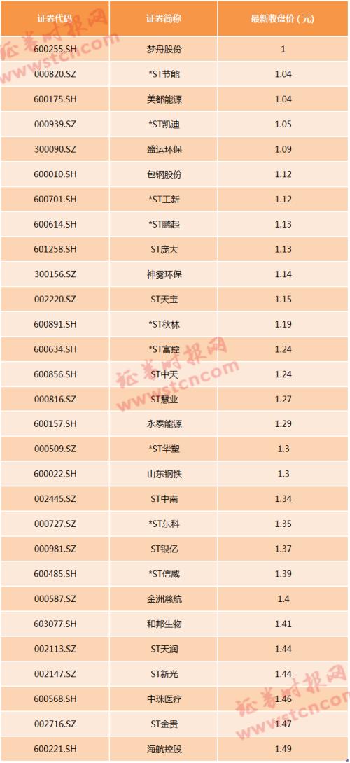 ST锐电退市流程尚未走完,A股面退的警钟再度敲响,时报君发现,截至目前,*ST欧浦、*ST刚泰、*ST飞马、天广中茂等4股股价已经连续多天低于1元。