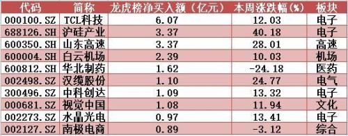 从本周登上两市成交龙虎榜的201只个股来看,游资的关注热点与主力资金基本一致,较为集中于电子类个股,6亿元游资抢筹TCL科技;而沪硅产业(行情688126,诊股)借科创板崛起+次新股的东风,周内涨幅高达40%,超3亿元游资抢入。值得注意的是,华北制药(行情600812,诊股)周内大跌24%,但却有1.6亿元游资暗中潜入。