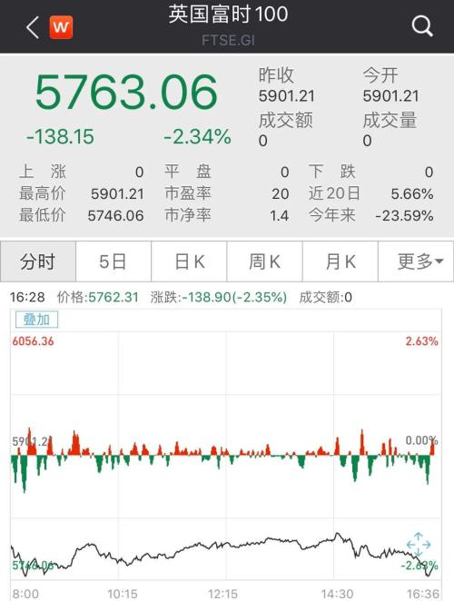 欧洲股市方面,德股、法股休市,英国富时100指数跌超2%。截至收盘,英国富时100指数报收于5763.06点,比前一交易日下跌138.15点,跌幅为2.34%。