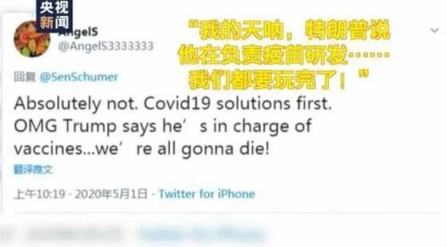 “我的天呐,特朗普说他在负责疫苗研发……我们都要玩完了!”一名美国网友在网络上发文说: