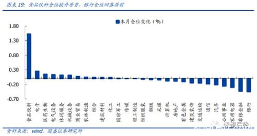 4、仓位分布:食品饮料大幅加仓,银行仓位回落居前