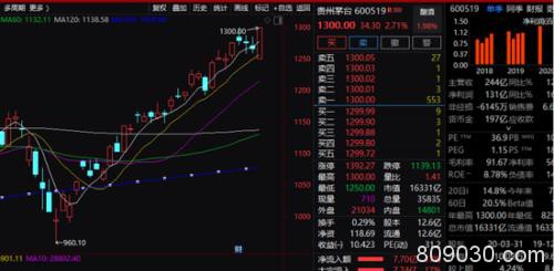 这里面的一个典型仍旧是贵州茅台(行情600519,诊股)。行情数据显示,该股收盘上涨2.71%,以全天最高价收盘,并达到1300元的历史最高价,刷新了近年来A股市场一个新的股价纪录。