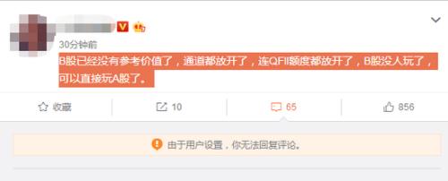 某微博大V发博直呼“B股已经没有参考价值了,通道都放开了,连QFII额度都放开了,B股没人玩了,可以直接玩A股了。 ”